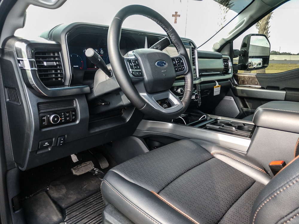 See what's behind you with the back up camera on this Ford F-250. This Ford F-250 has automated speed control that adjusts to maintain a safe following distance, enhancing highway driving convenience. The Ford F-250 features a hands-free Bluetooth phone system. Never get into a cold vehicle again with the remote start feature on it. The leather seats in it are a must for buyers looking for comfort, durability, and style. The Ford F-250 is pure luxury with a heated steering wheel. The installed navigation system will keep you on the right path. An off-road package is installed on the Ford F-250 so you are ready for your four-wheeling best. The vehicle emanates grace with its stylish gray exterior. Set the temperature exactly where you are most comfortable in the vehicle. The fan speed and temperature will automatically adjust to maintain your preferred zone climate. It has four wheel drive capabilities.
