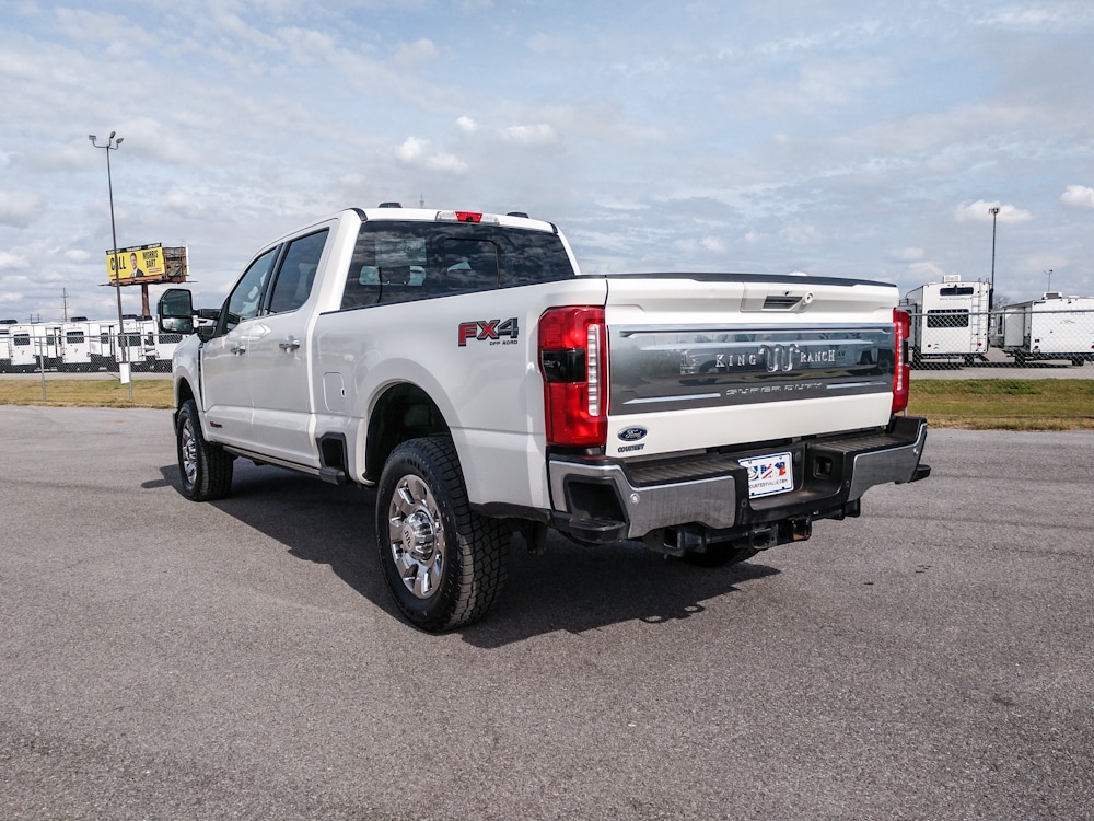 Chrome Package: Unique Chrome Mirror Caps; Chrome Front and Rear Bumpers; LT275/65Rx20E BSW A/T Tires; Chrome Door Handles; Chrome Exhaust Tip. FX4 Off-Road Package: Transfer Case and Fuel Tank Skid Plates; Hill Descent Control; Off-Road Specifically Tuned Shock Absorbers; Unique FX4 Off-Road Box Decal. Order Code 700A: Unique King Ranch Leather 40/console/40 Seats; TorqShift 10-Speed Automatic Transmission; LT275/65Rx20E BSW A/T Tires; B&O Unleashed Sound System by Bang & Olufsen Radio. Twin Panel Power Moonroof. High Capacity 11.6 Axle Upgrade Package. Star White Metallic TC. Star White Metallic TC. Electronic-Locking with 3.31 Axle Ratio. Max Recline Seats. All-Weather Floor Mats. LED Roof Clearance Lights. Wheel Locks. Road Side Assistance Kit with Ford Logo. First Aid Kit with Ford Logo. **Equipment listed is based on original vehicle build and subject to change. Please confirm the accuracy of the included equipment by calling the dealer prior to purchase.**